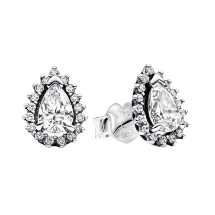 Un diseño que evoca pureza y elegancia. La forma de lágrima resalta la piedra central, rodeada por un halo de destellos que intensifican su brillo. Cada detalle transmite sofisticación y delicadeza, convirtiendo estos aretes en una pieza que ilumina con gracia cualquier ocasión especial.