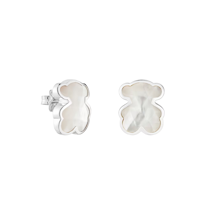 ARETES PLATA NÁCAR OSO 16 MM ICON COLOR