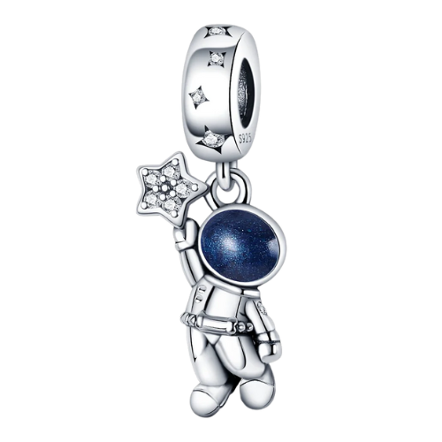 Un diseño que celebra la aventura espacial y la magia del universo. Este charm de Pandora, elaborado en plata de primera ley, muestra un astronauta acompañado de una estrella y detalles galácticos que evocan exploración, sueños y descubrimiento. Es la pieza ideal para quienes aman el misterio del cosmos y desean llevar consigo un símbolo de inspiración infinita.
