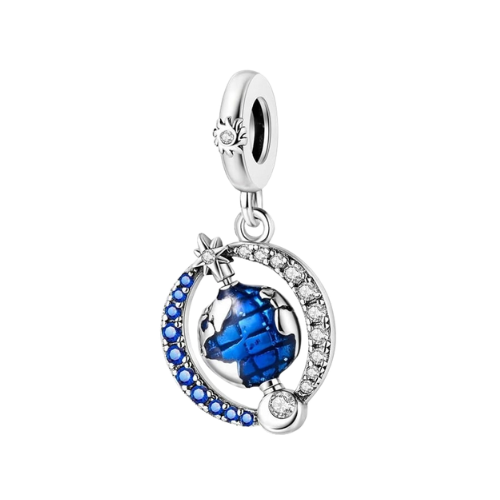 Un diseño que celebra la belleza y diversidad del planeta. Este charm de Pandora, elaborado en plata de primera ley, presenta un globo terráqueo con detalles en azul que evocan océanos y tierras, símbolo de unión y esperanza global. Es una pieza especial para quienes aman viajar y desean llevar consigo un recordatorio de la grandeza del mundo