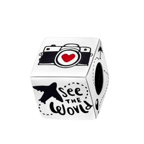 Un diseño divertido y aventurero que evoca la emoción de descubrir nuevos destinos. Este charm en forma de cubo con detalles inspirados en el viaje simboliza exploración, movimiento y experiencias inolvidables. Es una pieza especial para quienes desean llevar consigo un recordatorio de sus aventuras alrededor del mundo.